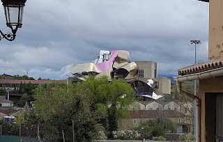15th April - Off once again, stopping in Estella for lunch where the nobles used to show off their family crests on their houses.